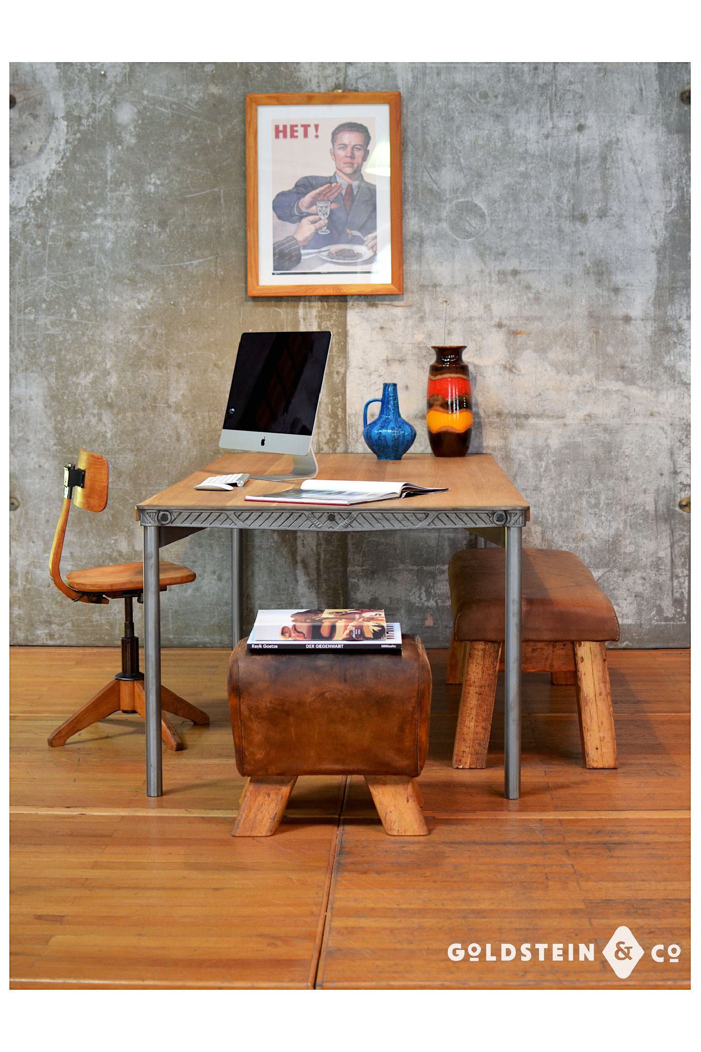 Vor einiger Zeit haben wir eine größere Menge eines seltenen historischen Regalsystems, bestehend aus gusseisernen Verbindungselementen, ankaufen können. Unser Vintage-Herz schlug dabei natürlich gleich höher und wir mussten sofort anfangen zu konstruieren. Die Idee: Ein modulares Möbelsystem. Ganz so weit sind wir bisher noch nicht gekommen. Der Tisch aber immerhin steht schon.