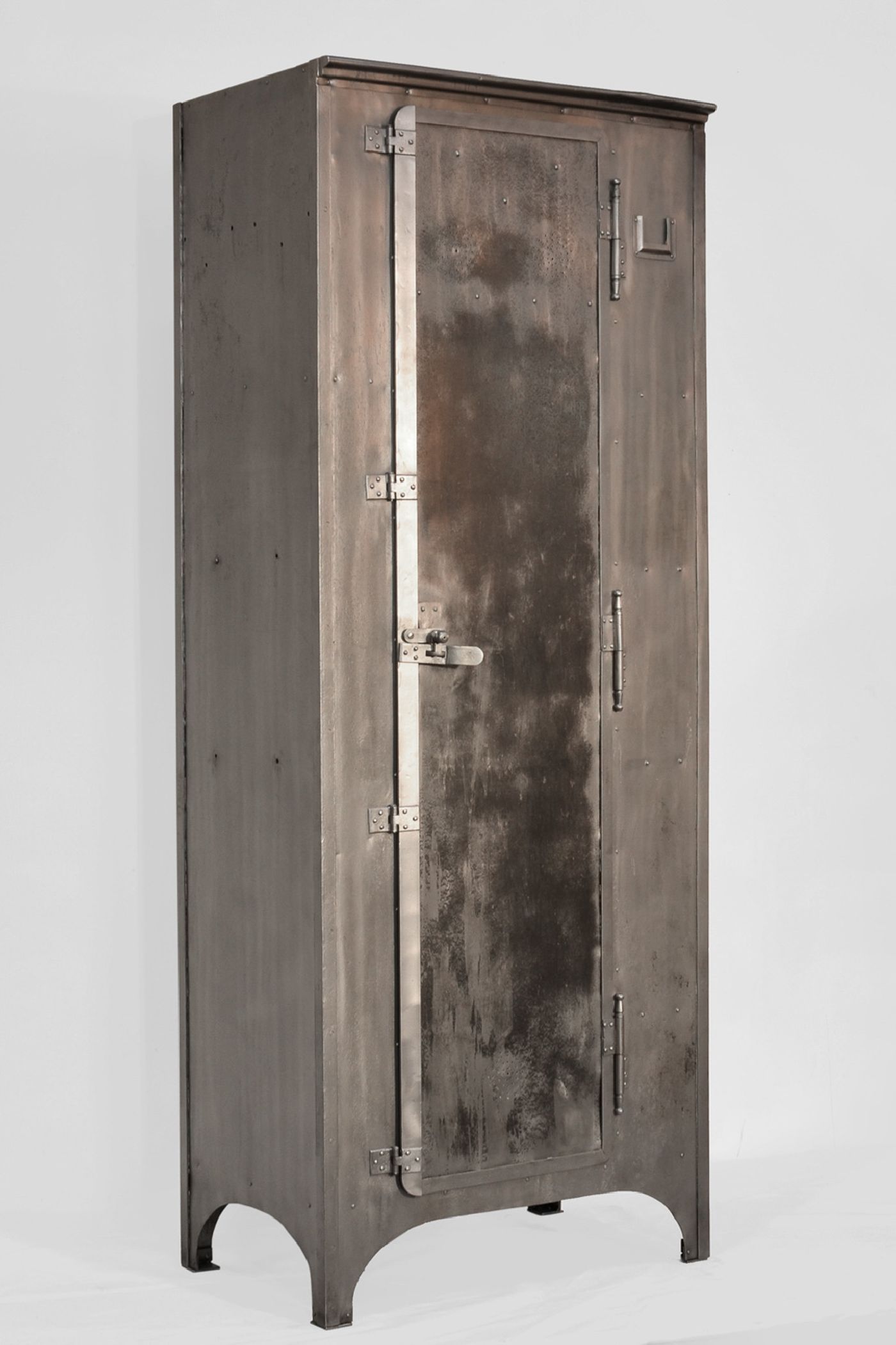 Hergestellt wurden diese ungewöhnlichen eintürigen Spinde am Ende des neunzehnten und zu Beginn des zwanzigsten Jahrhunderts. Die Formensprache des Schrankes ist noch stark von der Gründerzeit beeinflusst.