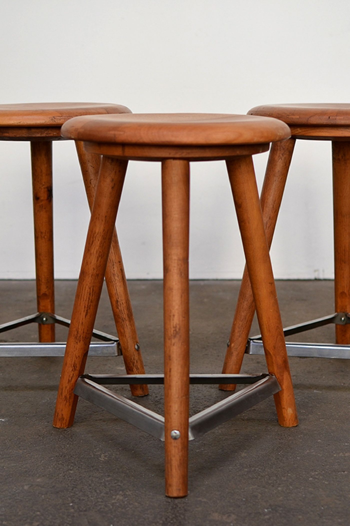 Diese Werkstatthocker aus Buche und Stahl sind eine hochwertige Arbeit aus unseren Werkstätten. Beim Design haben wir uns am historischen Vorbild der Industriehocker von AMA aus den 1930er Jahren orientiert.